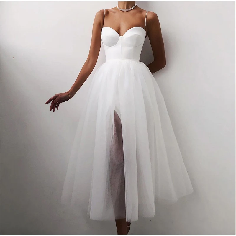 Сетчатое женское платье для вечерние, летнее, без рукавов, элегантная свадебная одежда, с завышенной талией, на бретелях, пикантное, однотонное