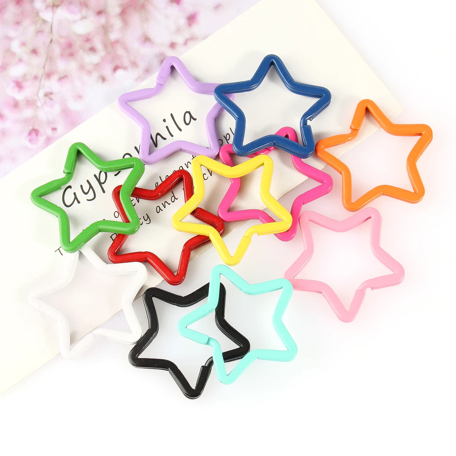Металлическая пятиконечная звезда Форма полые брелок Разделение кольцо для ключей шарнирная застежка-Омар разъем для поясная сумка для собак маска цепи 3x35mm