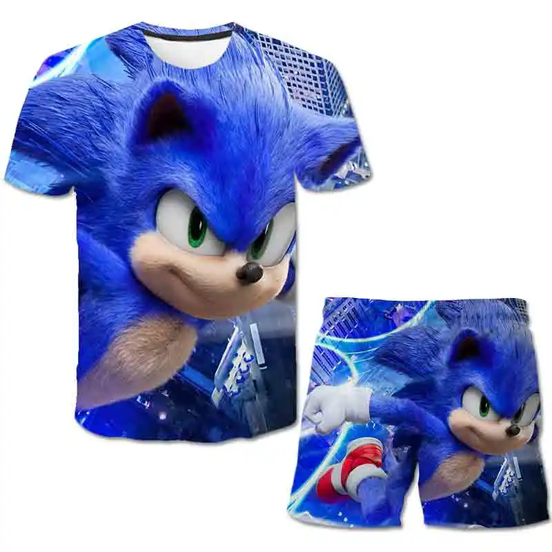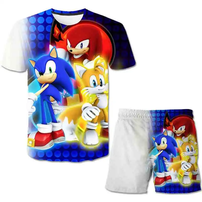 Детская одежда 3D Sonic для мальчиков летняя футболка + шорты спорт...