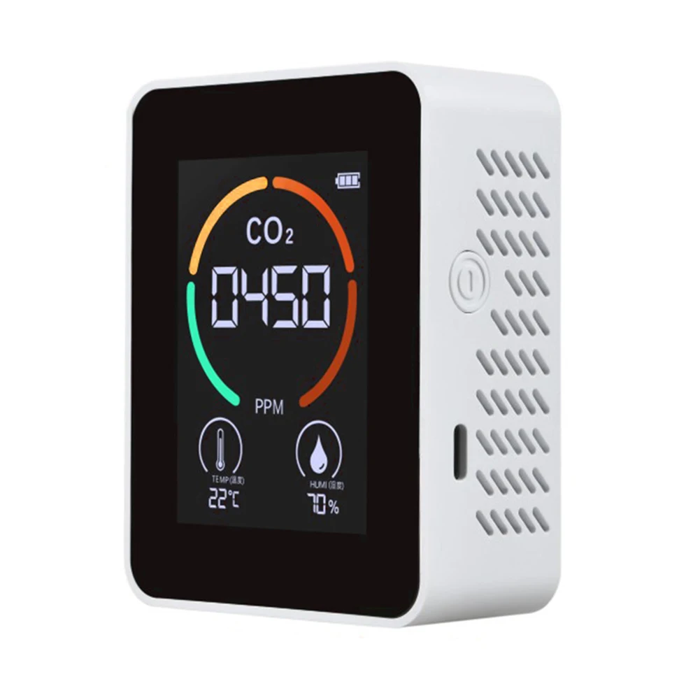 5 в 1 портативный CO2 измеритель температуры датчик влажности тестер Качество воздуха монитор Анализатор углекислого газа TVOC HCHO детекторХарактеристика:Детектор углекислого газа: умный тестер значений углекислого газа газовый анализатор использует воздушный полупроводниковый датчик TVOC для контроля температуры и влажности воздуха, содержания углекислого газа, формальдегида и летучих веществ в воздухе.Это высококачественный детектор качества воздуха, использующий высококачественный электрохимический модуль обнаружения, с хорошей точностью, стабильной производительностью, сильной способностью против помех, низким потреблением и долгим сроком службы. Точно обнаруживает углекислый газ. Большой экран отображает мощность, CO2, температуру и влажность.Продукт не нуждается в калибровке, он может быть протестирован после загрузки, и он может точно обнаруживать углекислый газ.Оснащен большим экраном, различные цвета шрифта отображают различное качество воздуха, зеленый 400-450ppm, синий 451-700ppm, фиолетовый 701-1000ppm, желтый 1001-2000ppm, красный 2001-5000ppm.Сотни вентиляционных отверстий сзади не только ускоряют конвекцию между воздухом и машиной, тем самым обеспечивая эффективное обнаружение, но и обеспечивают хороший эффект рассеивания тепла.Спецификация:Экран Размер: 2,8 дюйм (ов)Тип экрана: TFT-LCDМатериал экрана: стеклоМатериал: АБС-пластикЦвет: черный, белыйРазрешение экрана: 240*240Время отклика: <1sДиапазон температур: от-10 ℃ до 70 ℃Диапазон измерения влажности: 0-99% RHРабочее напряжение: 5 В/1 а адаптер для зарядкиМаксимальная мощность: зарядный ток никель-металл-600mA, 3,7 V литиевая батарея источника питанияЕмкость аккумулятора: 1200 мАчТип батареи: литиевая батареяСпособ зарядки: USBВремя зарядки: 1 часРазмер: 92x72x3 7 мм/3.62x2.83x1.46inПримечание:В связи с различиями мониторов и эффектами освещения реальный цвет товара может немного отличаться от цвета на фотографиях. Спасибо!Возможны отклонения в 1-2 см вследствие измерений вручную.