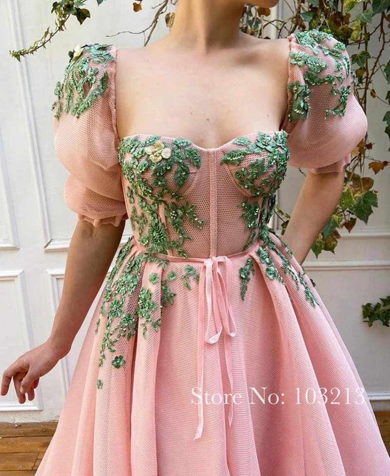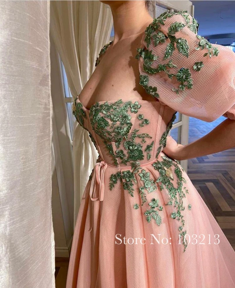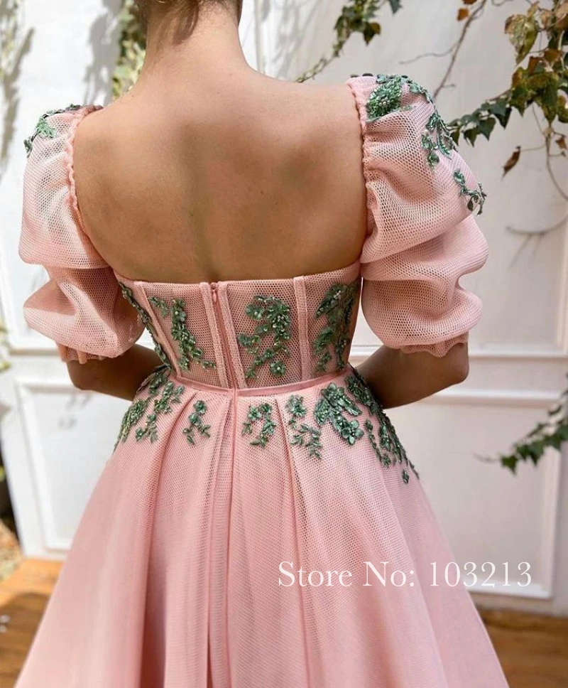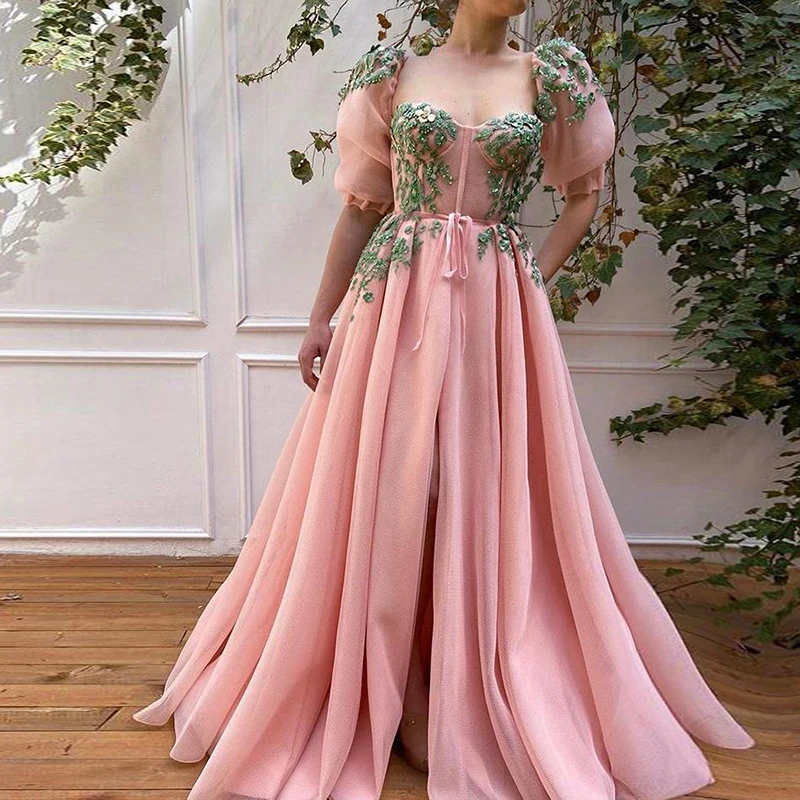 Розовое платье для выпускного вечера, модель 2021 года, платье в пол для свадебной вечеринки, вечернее платье в стиле бохо с пышными короткими рукавами