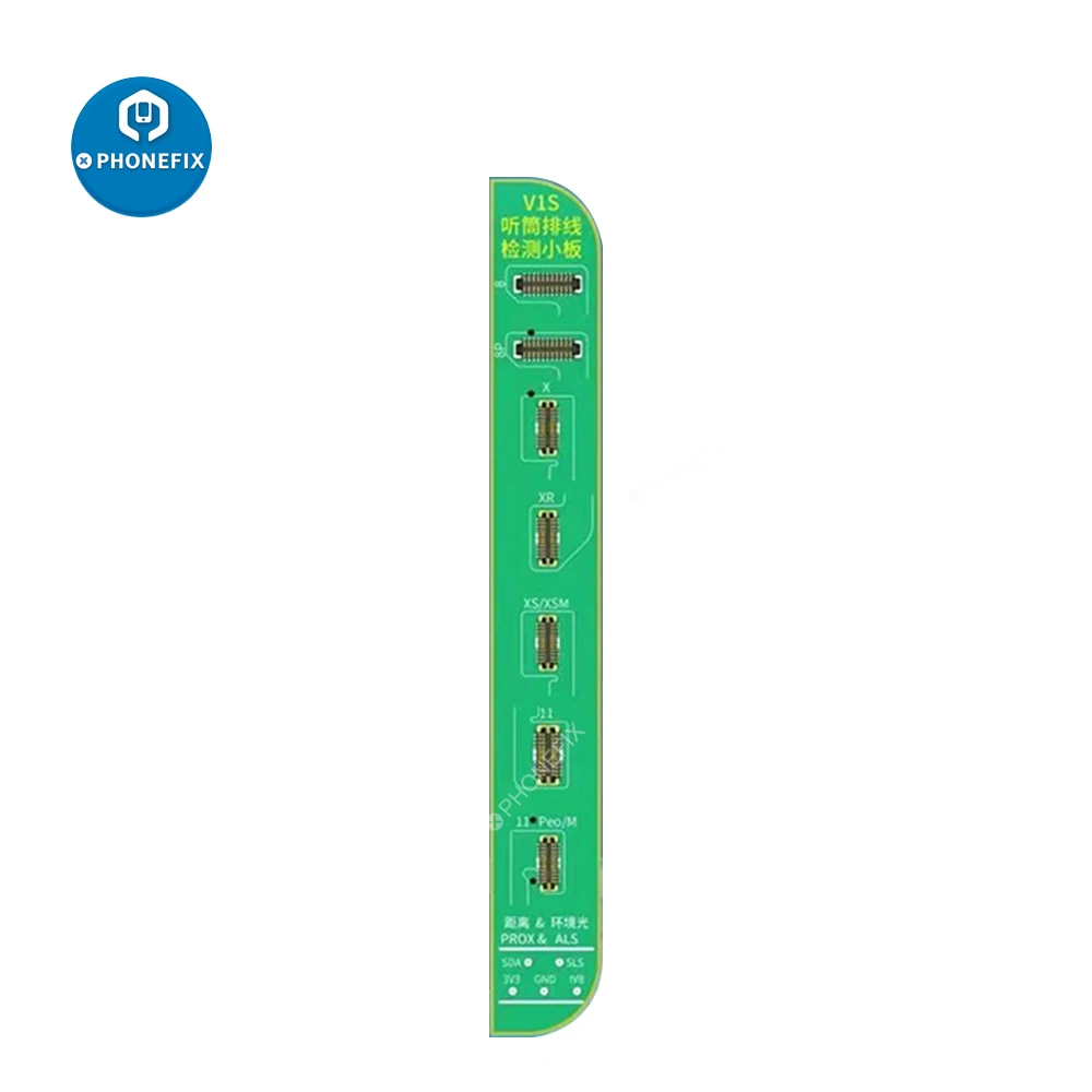 JC V1S Динамик гибкий кабель плата обнаружения для iPhone истинный тон Лицо ID Ремонт. JC V1S приемник FPC плата обнаружения для iPhone истинный тон Лицо ID Ремонт Функции: 1. Поддержка для ремонта iphone x face ID & truetone Проблема вызвана отказом приемника FPC, не требует оригинального приемника FPC 2. Приемник FPC обнаружения адаптер предназначен для работы на JC V1S, который поддерживает ремонт 8-11PROMAX Полный серии лица lD и truetone проблемы вызванные отказом приемника FPC, не требуется оригинальный ресивер FPC. JC V1S приемник flex cable detection board работает с JC V1S host, он используется для обнаружения функции iPhone true tone, И ремонт iPhone Face ID и функции истинного тона без оригинального динамика наушника с гибким кабелем датчика.