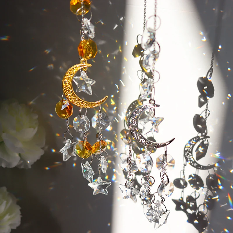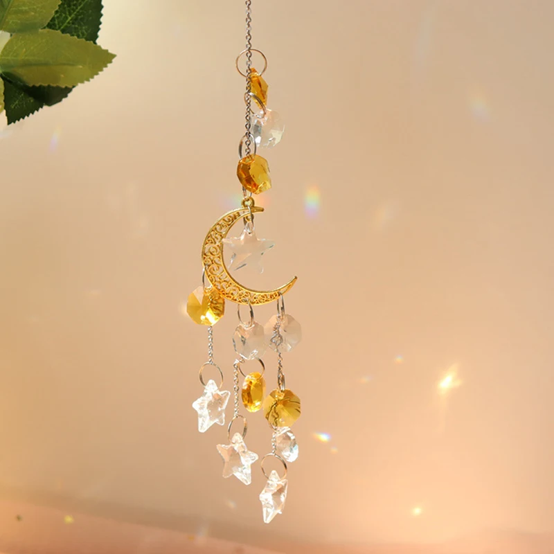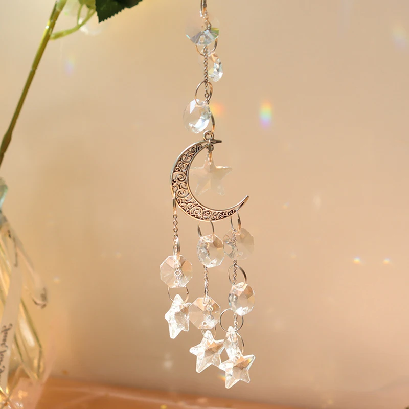 Хрустальная подвеска в виде колокольчика, звезды, Луны, 1 комплект, подвесная капелька для улицы, дома, сада, окна, свадьбы, занавеска, люстра, сделай сам, Декор