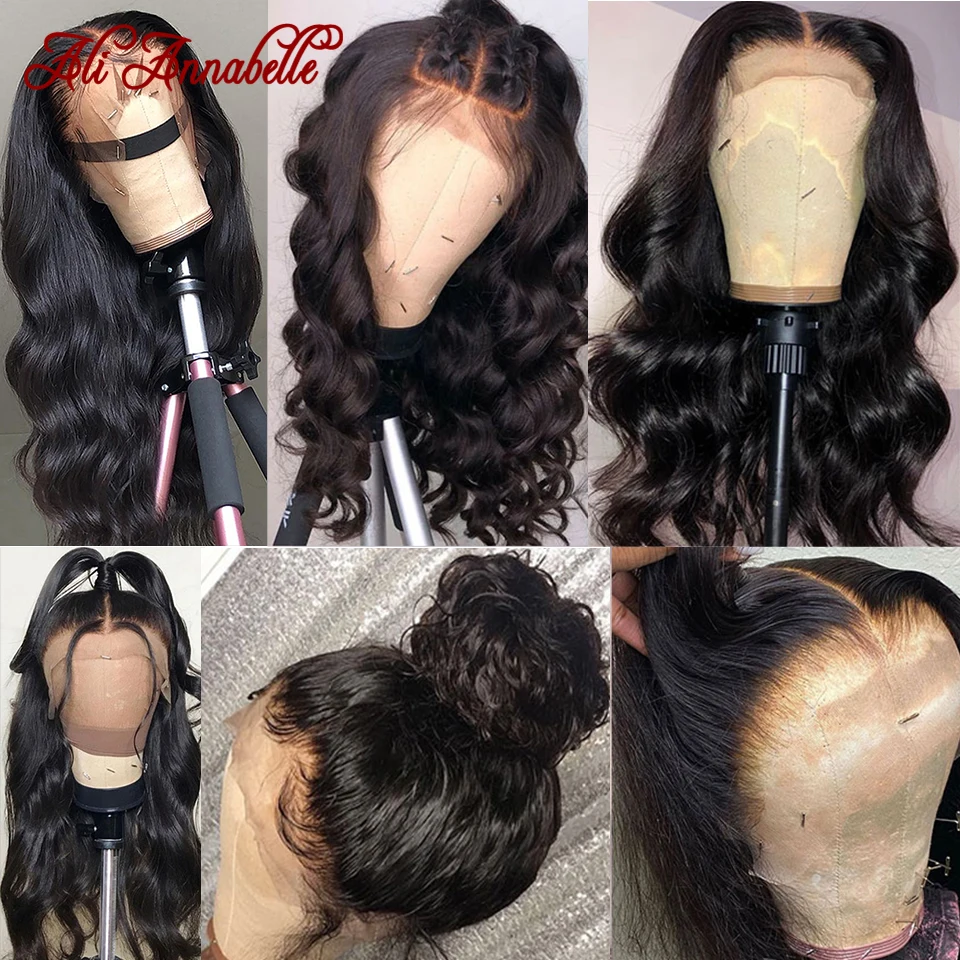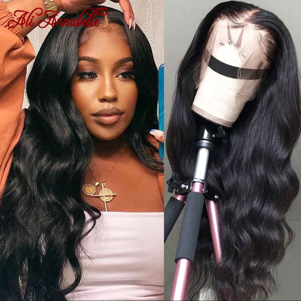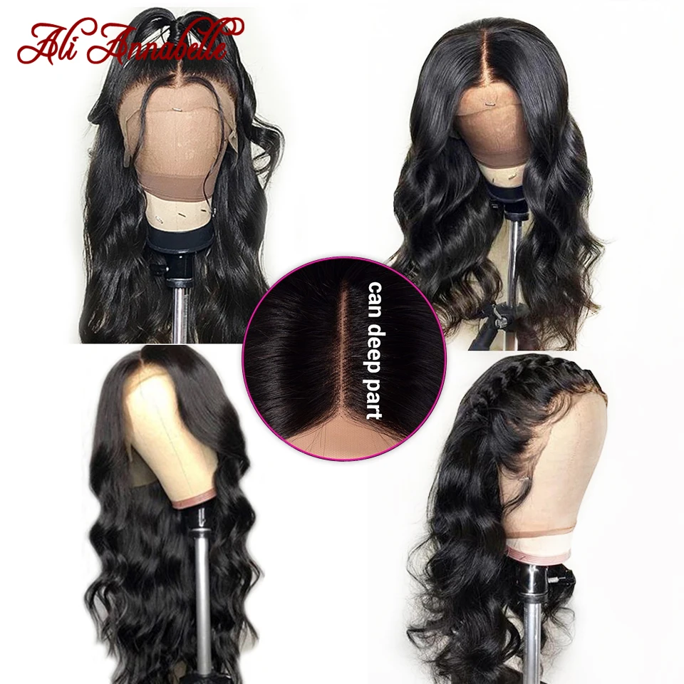 Ali Annabelle бразильские волнистые парики фронта шнурка для женщин человеческие волосы 13x6 предварительно выщипанные натуральные волосы 30 дюймов парики фронта шнурка