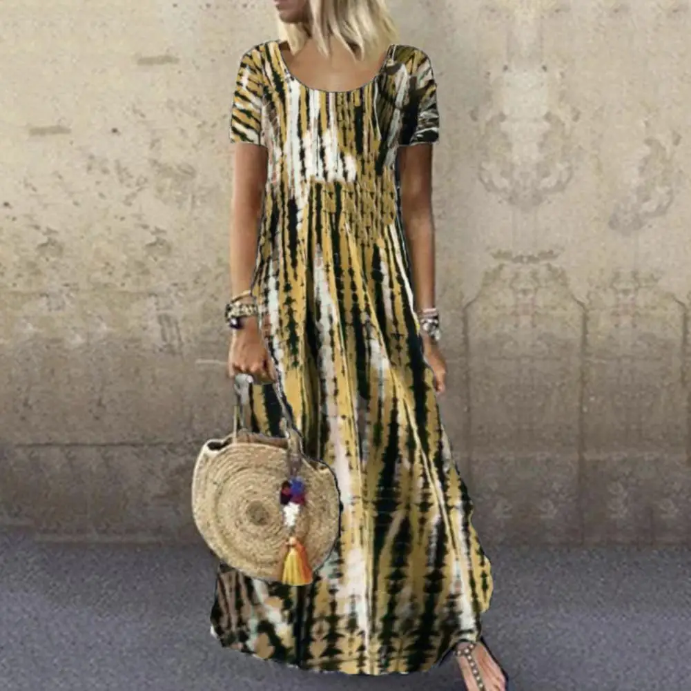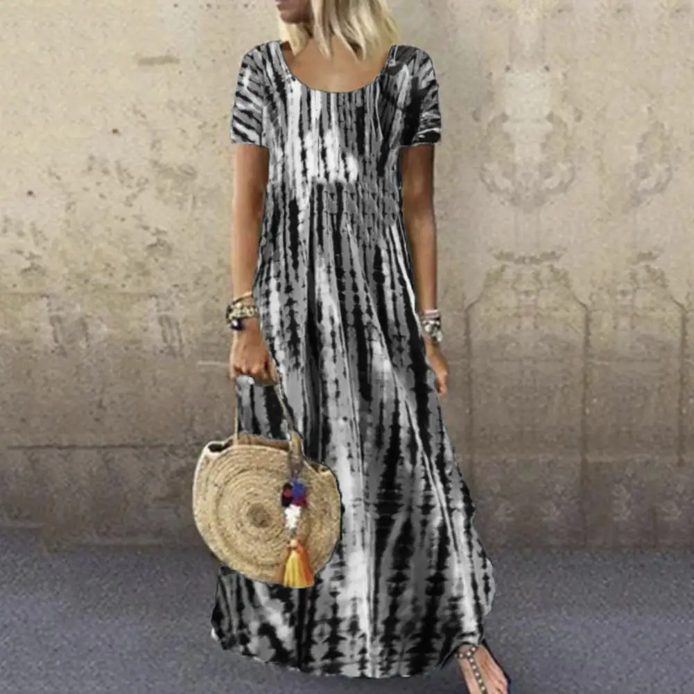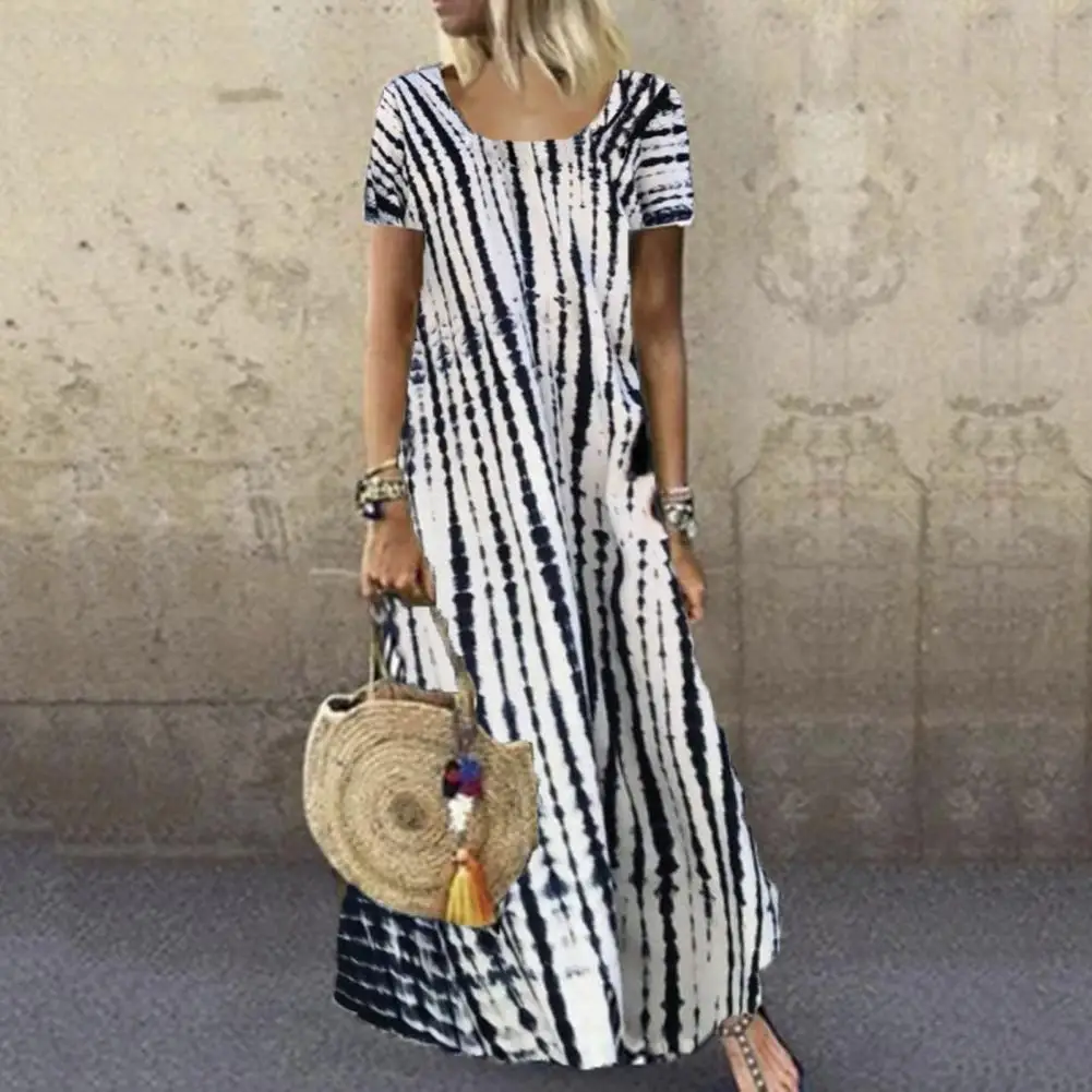 Женское платье макси, с круглым вырезом и коротким рукавом, с широким подолом, уличная одежда, длинное пляжное платье для вечеринок, лето 2021