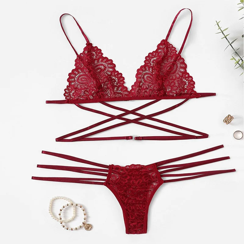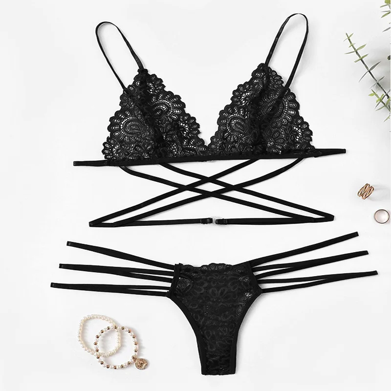 Женское сексуальное нижнее белье, кружевной комплект с бюстгальтером, прозрачный бандажный бюстгальтер с перекрестными ремнями, сексуальные комплекты дамского белья, женские комплекты нижнего белья, Женские стринги, комплект нижнего белья