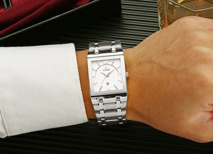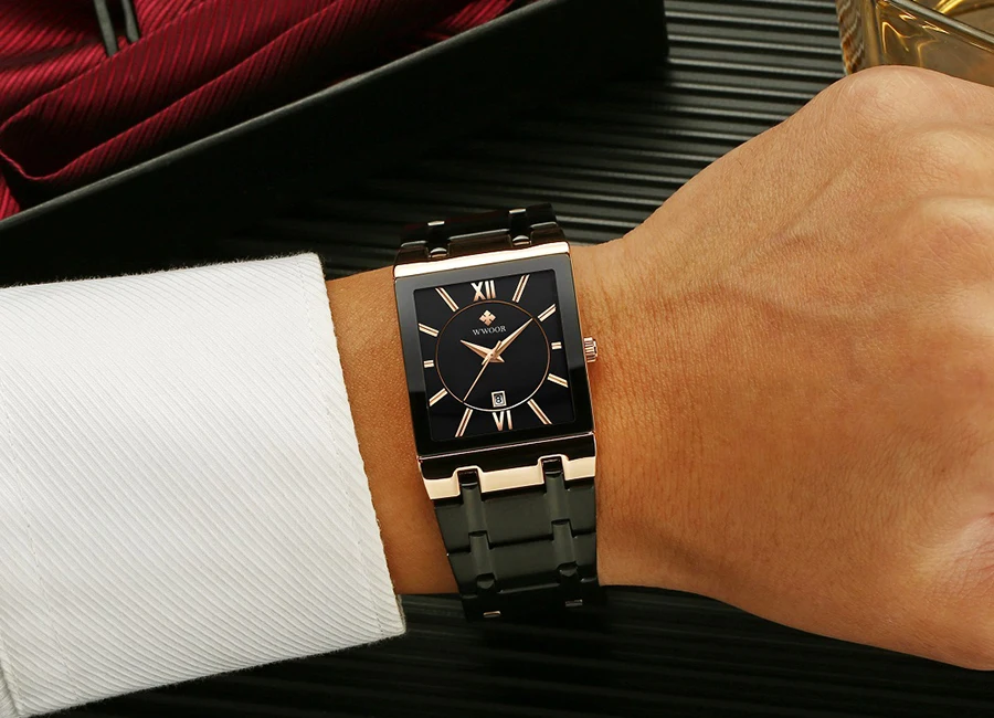 WWOOR оригинальный дизайн квадратные мужские часы с датой дисплея