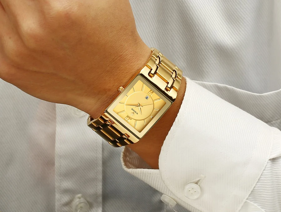 Часы WWOOR мужские из нержавеющей стали, квадратные, золотистые, черные, кварцевые, водонепроницаемые, с датой