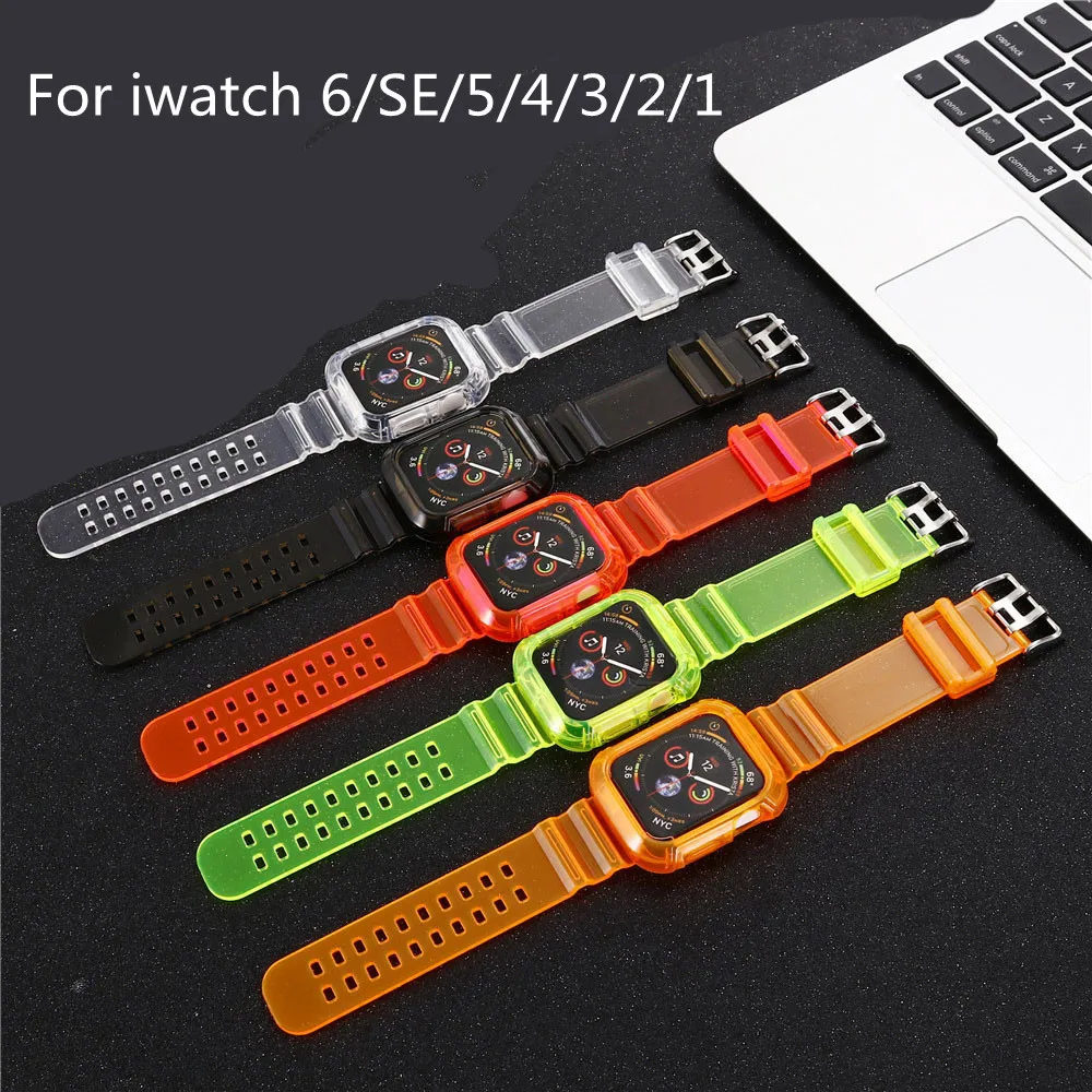 Силиконовый ремешок + чехол для apple Watch, прозрачный ремешок для...