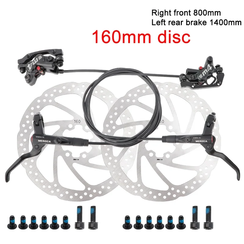 Велосипедный Гидравлический дисковый тормоз MTB, 4-поршневой тормоз, передний, задний, 8001400 мм, тормоз для горного велосипеда с масляным давлением и полимерными тормозными колодками