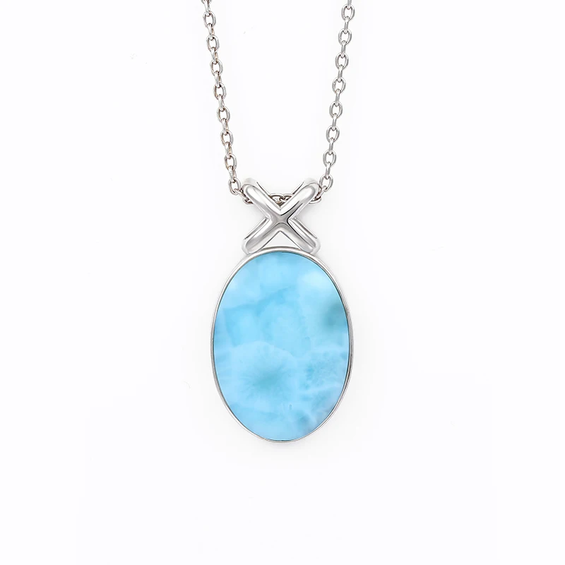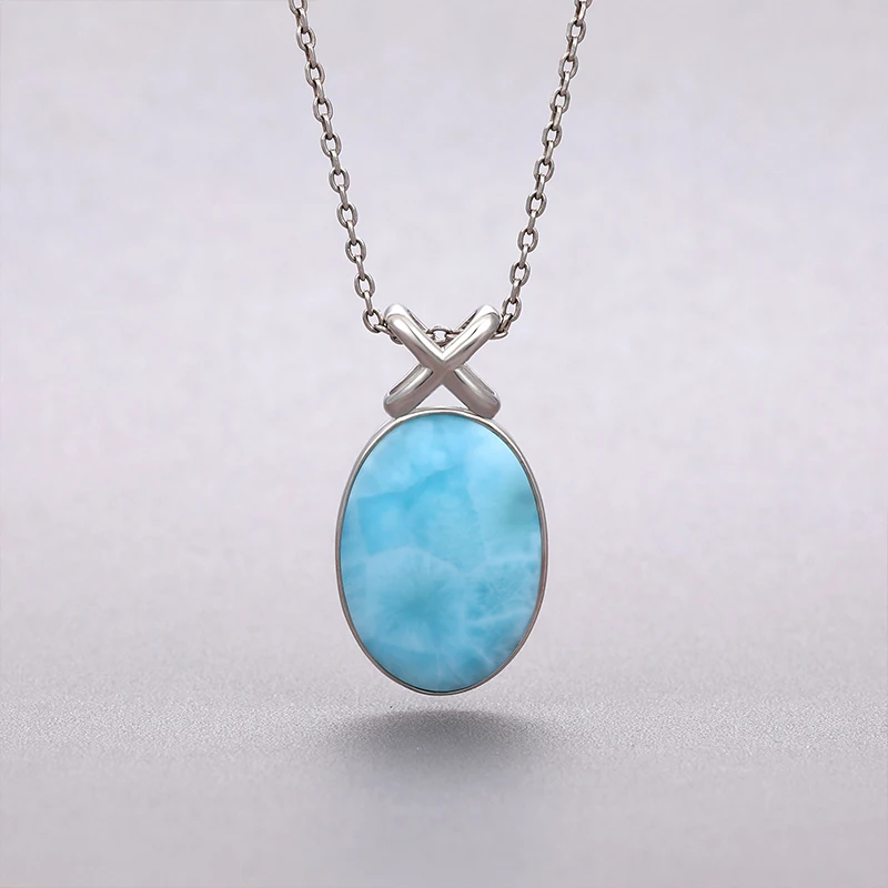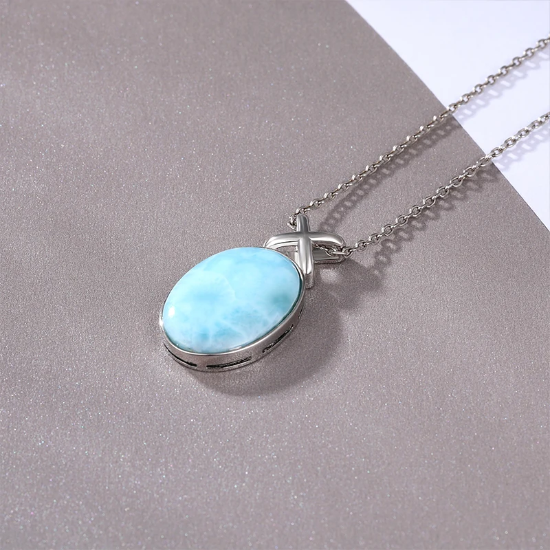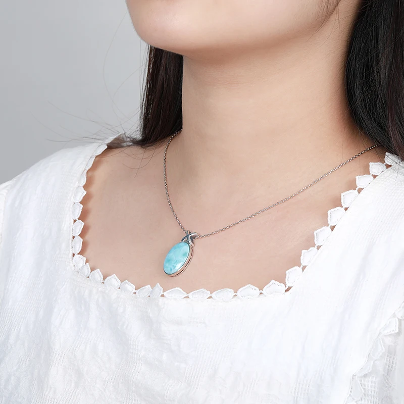 Позолоченные ювелирные изделия 925 стерлингового серебра ювелирные изделия Классическая Подвеска на ожерелье натуральный драгоценный Доминика Ларимар женские лодочки в стиле ретро овальные браслеты с подвесками