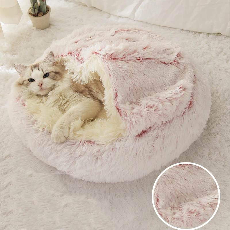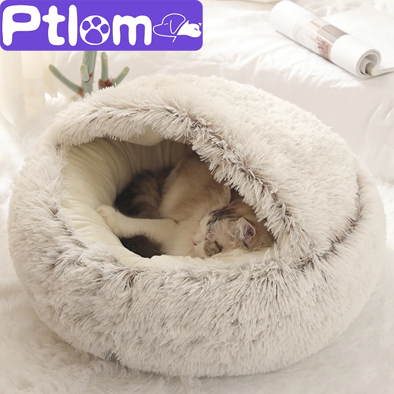 Зимняя длинная плюшевая кровать для кошек, круглая подушка для кошек, домик для кошек 2 в 1, теплая корзина для кошек, спальный мешок, Лежанка для кошек, Конура для маленьких собак и кошек