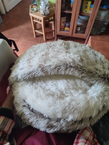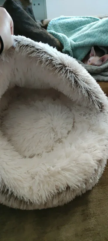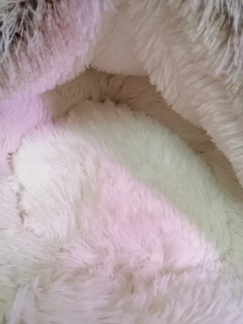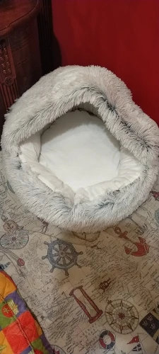 Красивая лежанка, выбрала с ворсом внутри и очень довольна, кошка на фото небольшая, 3кг, не знаю будет ли забираться внутрь, но ей и сверху нравится) Кот в первый день не оценил, думаю в дальнейшем будет на ней спать