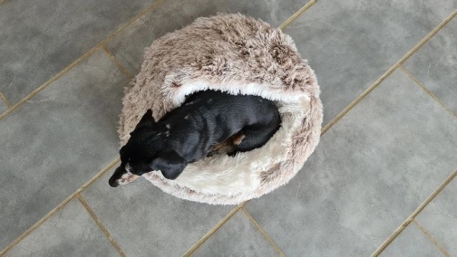 Быстро прибыть во Францию. Моя собака teckel весом 4,5 кг, kg моя паука не любит это! Это очень мило! С другой стороны, я немного боюсь стирки... Он не может сохранить свою форму. Или потом Ручная стирка? Для информации я взял 50x50 см