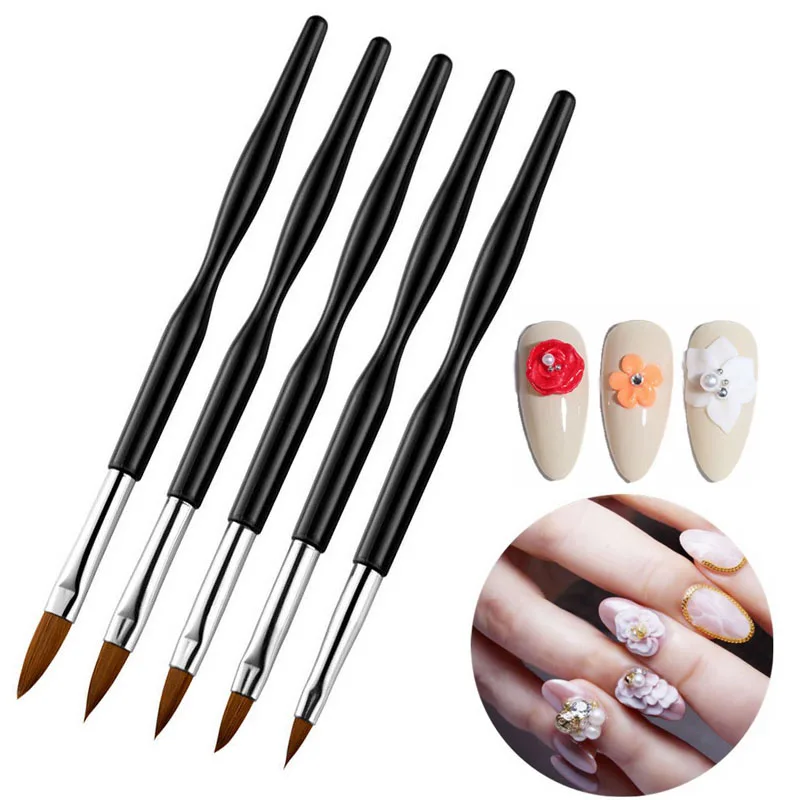 5 шт.лот Кисть для ногтей для обучения нанесению акрила Акриловая жидкость косметическая пудра гравировкой в виде цветка и формирование строитель Nail Art инструменты для рисования ручка