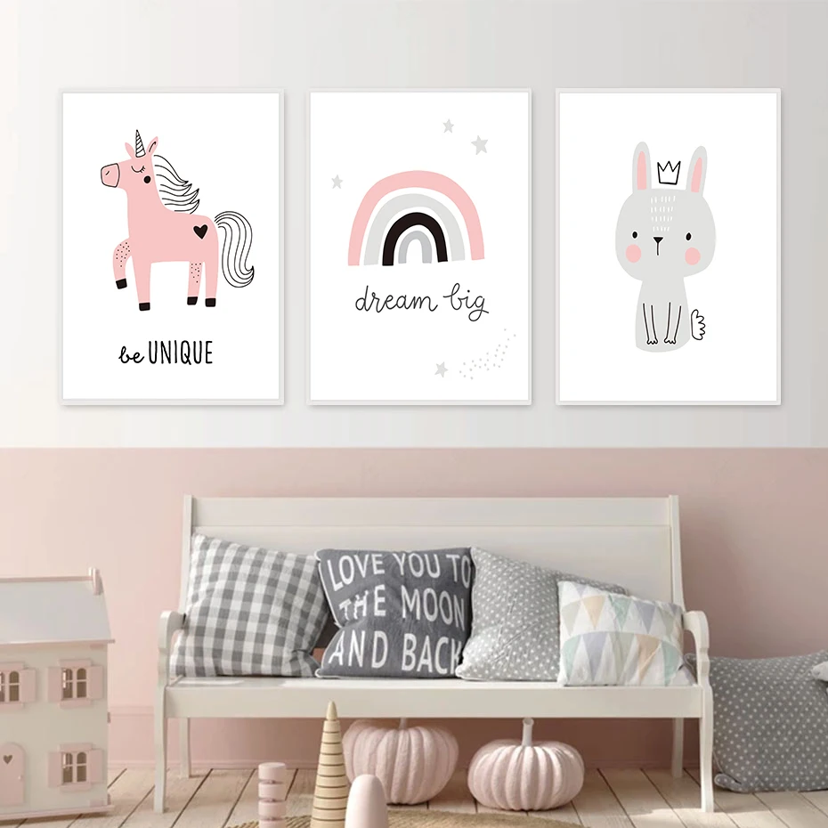 Милые девушки постер для детской комнаты, как ваша маленькая принцесса Единорог Easter Bunny настенный художественный Принт Холст Картина для украшения комнаты