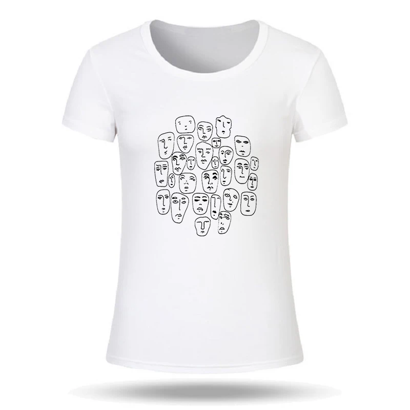 Футболка женская с абстрактным рисунком лица и смешным принтом, модная уличная одежда, 2021, лето размера плюс