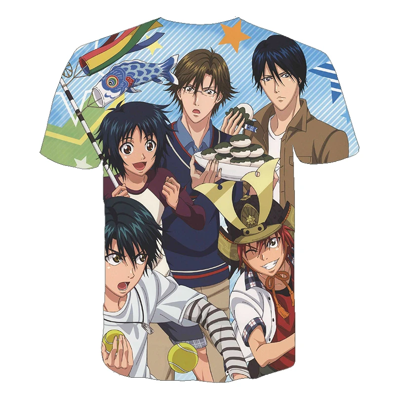 Футболка с 3D рисунком принца тенниса для маленьких мальчиков и девочек, детская одежда, летняя футболка с круглым вырезом и принтом из искусственного аниме в стиле Харадзюку