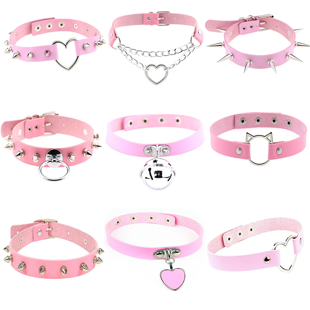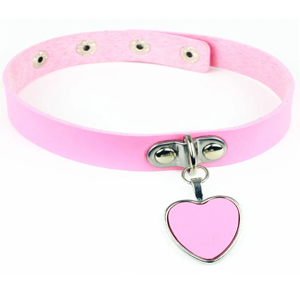 Модное Простое розовое ожерелье-чокер из искусственной кожи с подвеской в форме сердца Очаровательное ожерелье с металлическими заклепками в готическом стиле женский ошейник ручной работы шейный ремешок Лидер продаж
