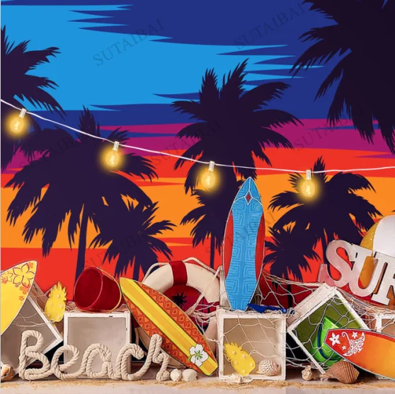 Летние тропические фоны для серфинга песок пляж доска фон Гавайский...