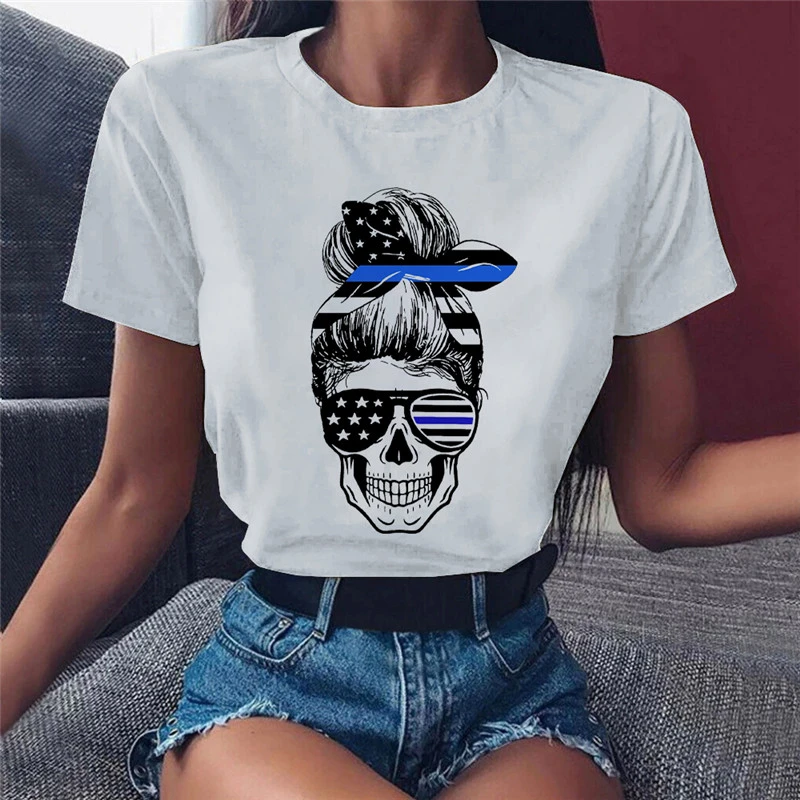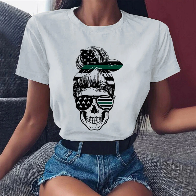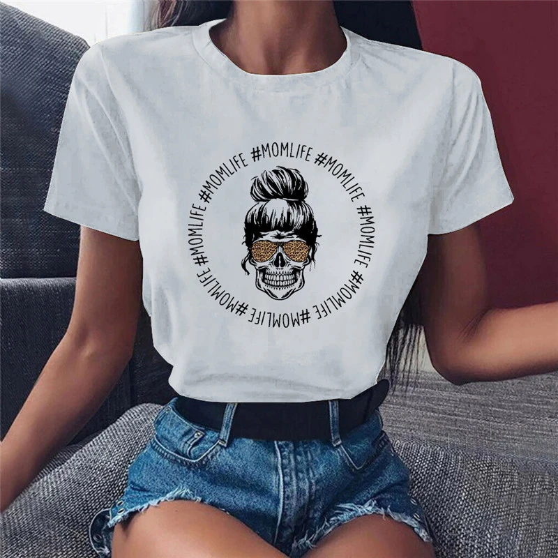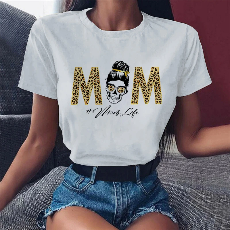 Футболка женская, с леопардовым принтом, черепом, коротким рукавом и круглым вырезом, размера XXXL, 2021