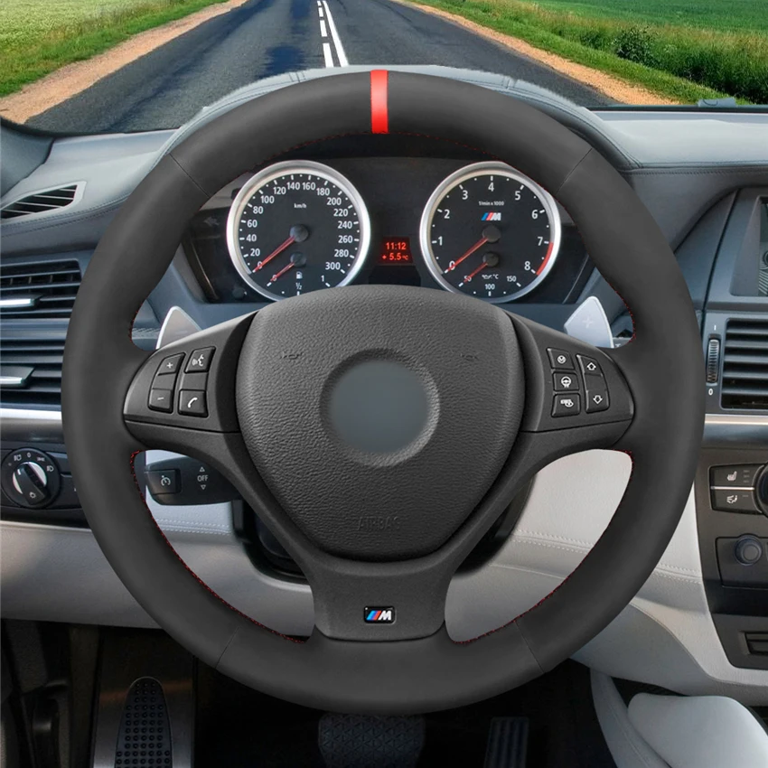 Черная замша красный маркер ручная сшивка, чтобы наушники не выскальзывали чехол рулевого колеса автомобиля для BMW M спортивные X5 E70 M50d X6 E71 X5 м X6 м E71