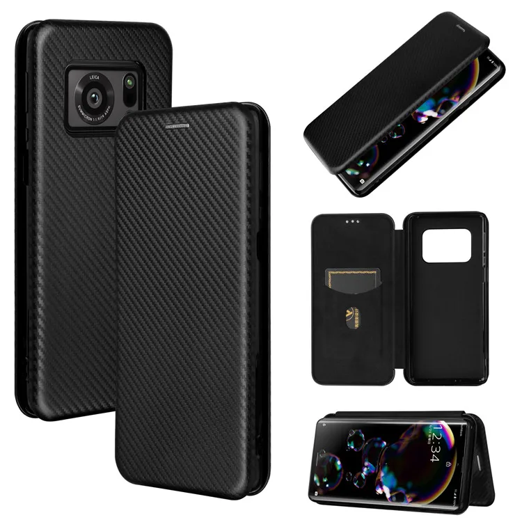 Для Sharp Aquos R6 чехол из углеродного волокна Флип кожаный чехол для Sharp Aquos R6 SH-51B деловой Магнитный кошелек слот для карт тонкий Чехол