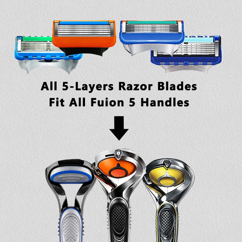 Лезвие бритвы с 5 лезвиями, снижающими трение, может уменьшить раздражение кожи и более тщательно сбрить каждую корневую бороду. Он совместим с ручкой Gillette fusion 5 all series/(он также совместим с бритвой в данном наборе).