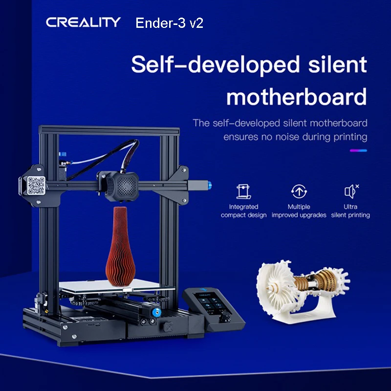 Обновленная материнская плата с бесшумными шаговыми драйверами TMC2208: по сравнению с theEnder 3andEnder 3 pro, v2 дизайн, который обеспечивает пользователям внешний вид и беззвучные обновления (более тихие 3D принтеры).Новый экран с обновленным простым в использовании интерфейсомНовый корпус нагревательного элемента.Умный датчик накаливания и повторная печать.Легкая функция подачи нити.X и Y-Axis натяжение ремня: быстрая и быстрая регулировка. И лучше улучшить точность размеров.Y-Axis - 4040 Экструзия алюминия: ось Y была заменена на 4040 экструзии, так же, как Ender 3 Pro.Это обеспечивает большую стабильность оси Y по сравнению с первоначальным стандартом Creality Ender 3.Насадка и набор инструментов, удобные и аккуратные.