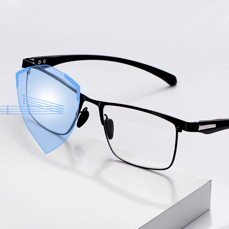 Готовый ультра-светильник, фотохромные прогрессивные Мультифокальные очки для чтения, мужской анти-синий светильник, пресбиопические очки, гибкие металлические