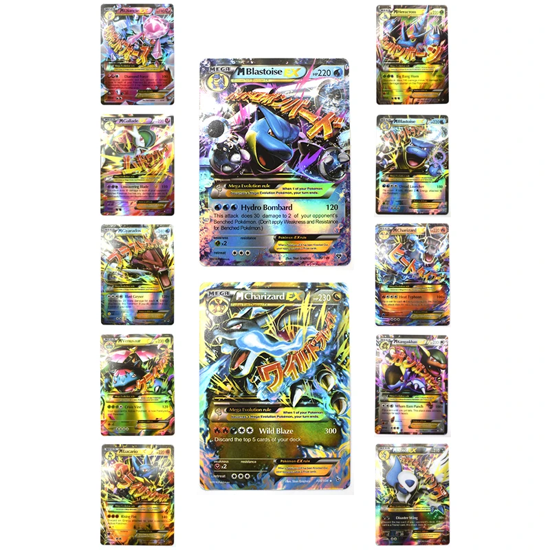 Карты Покемон EX 100, мега-игрушка шт., блестящая английская настол...