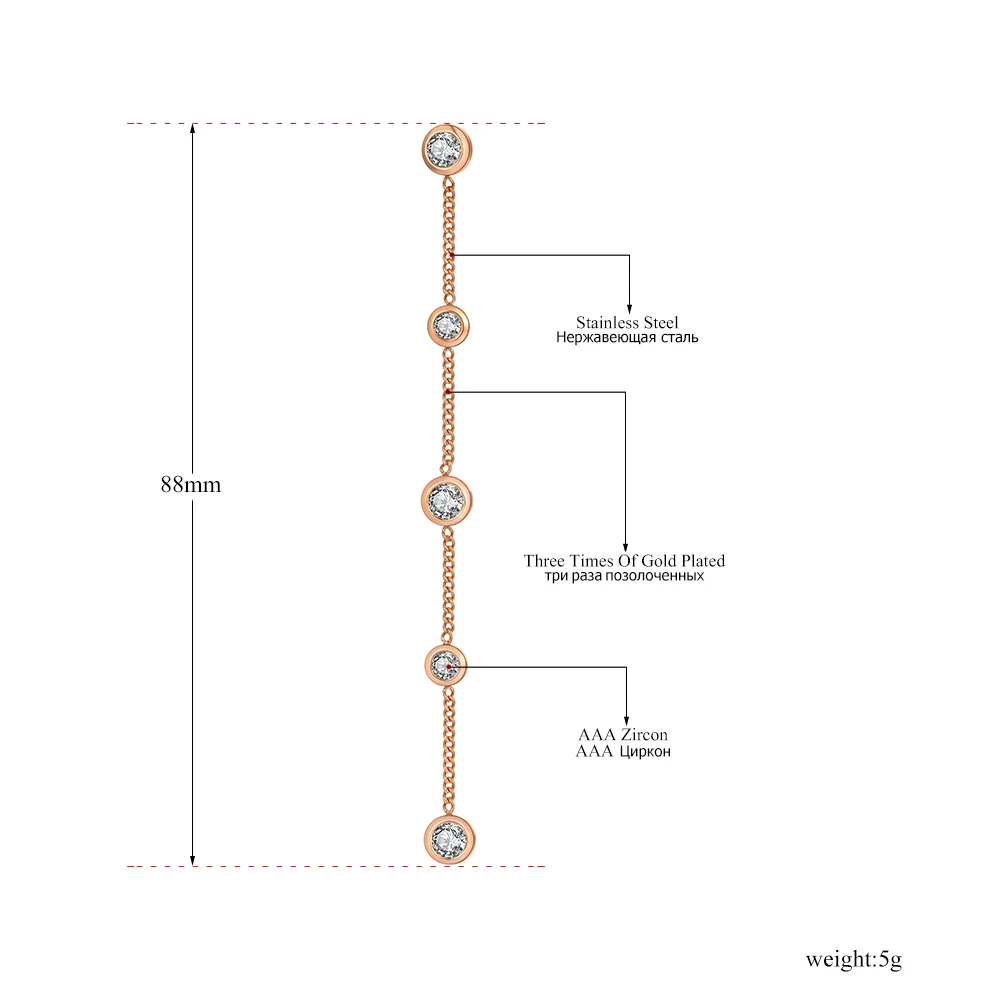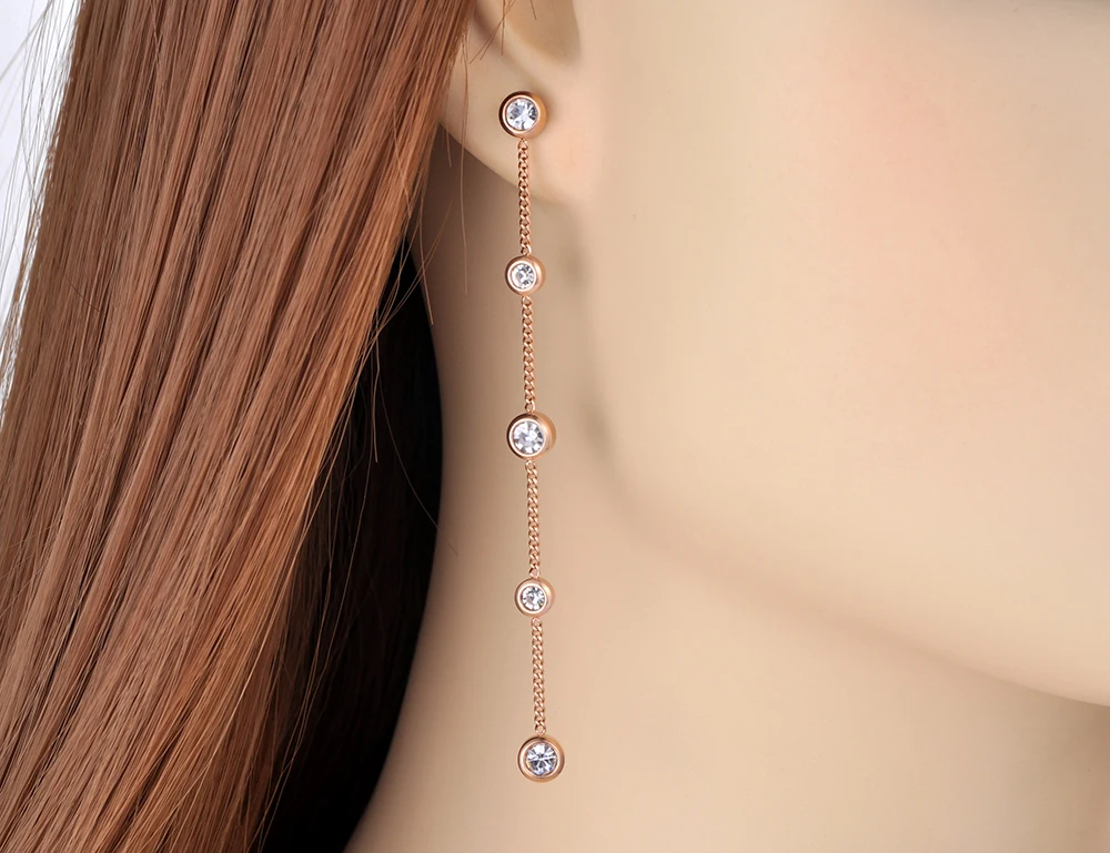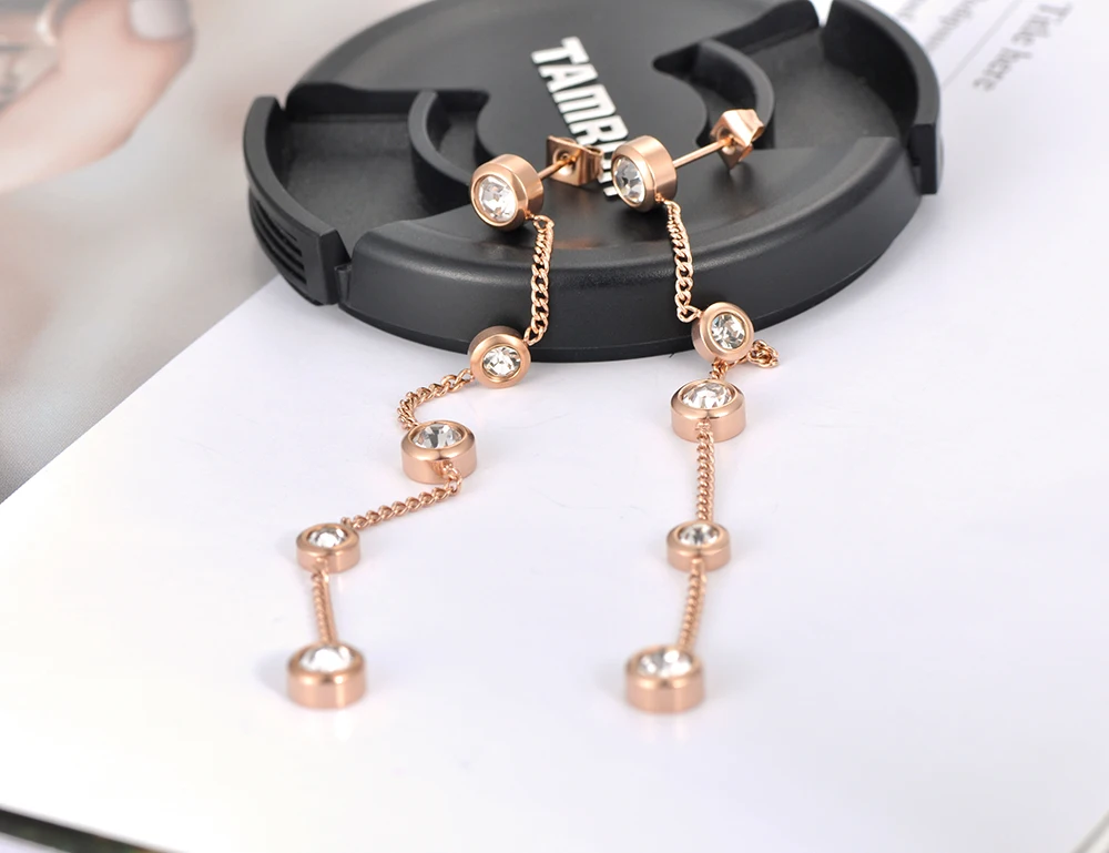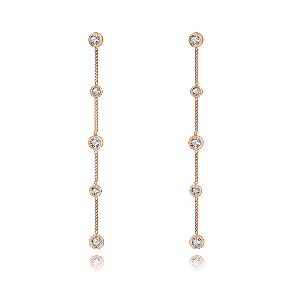 JeeMango розовое золото нержавеющая сталь вечерние цепь кисточкой, серьги для женщин и девушек, в богемном стиле, фианиты, кристаллы свисающие серьги ювелирные изделия JE20078