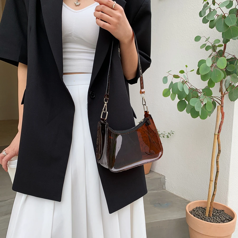 Сумка-багет Женская, прозрачная, однотонная, 2021