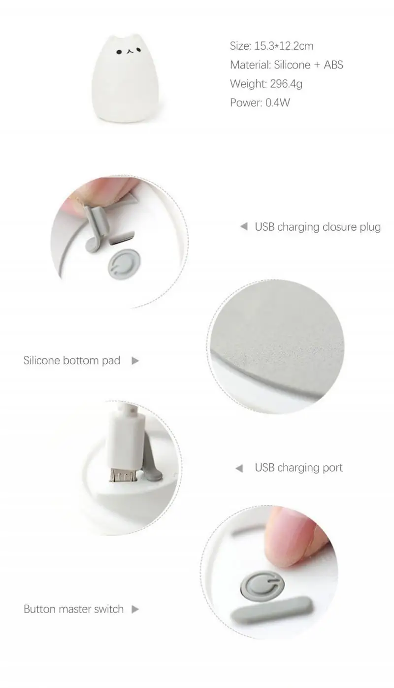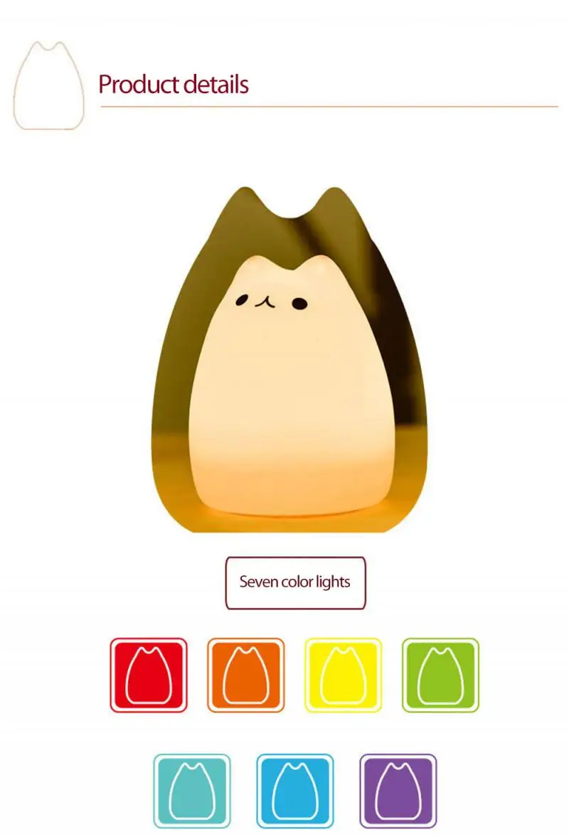 Кошка светодиодный ночник сенсорный датчик пульт дистанционного управления 7 цветов с регулируемой яркостью USB Перезаряжаемый мультяшный силиконовый светильник для детей подарок для детей