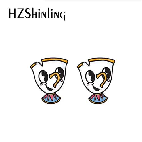 Серьги-гвоздики с эпоксидной смолой, крутые Волшебные кофейные чашк...