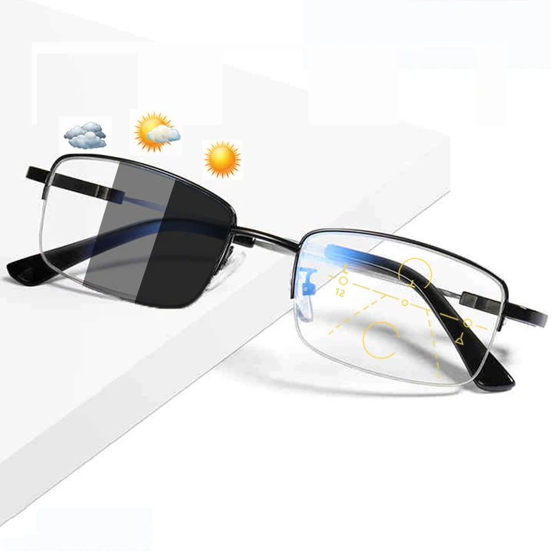 Фотохромные очки для чтения для мужчин и женщин, прогрессивные многофокальные очки с титановой оправой, гибкие очки для дальнозоркости с защитой от сисветильник