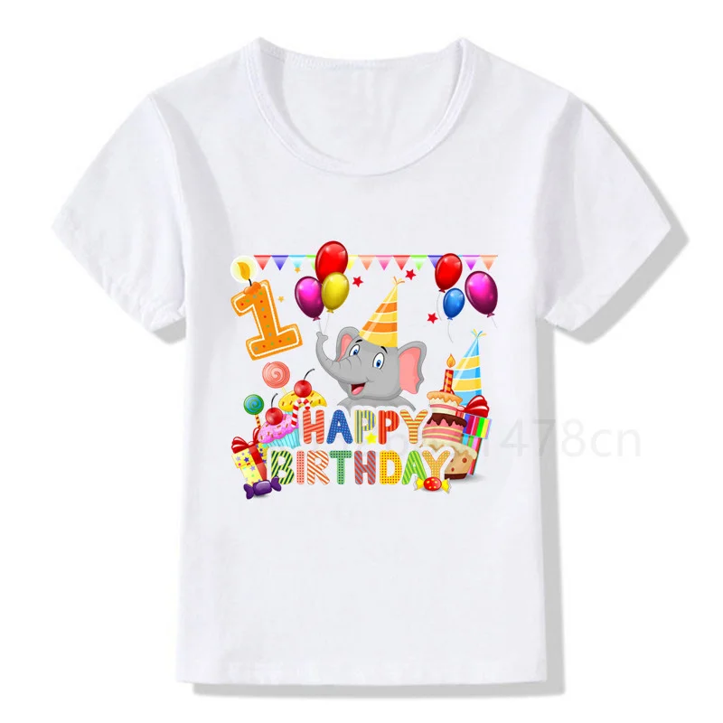 Дети с днем рождения Слон номер 1 до 10 лет, футболка с принтом животных для детей от двух до восьми на день рождения вечерние для маленьких мальчиков детская одежда футболки для мальчиков и девочек Забавные футболки подарок