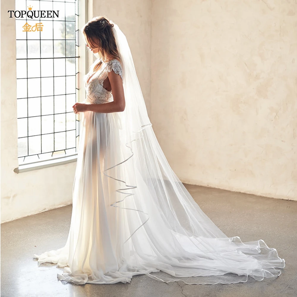 Свадебная фата TOPQUEEN V21, 3 м, белая Фата цвета слоновой кости, свадебная фата, аксессуар для фото, Фата для собора