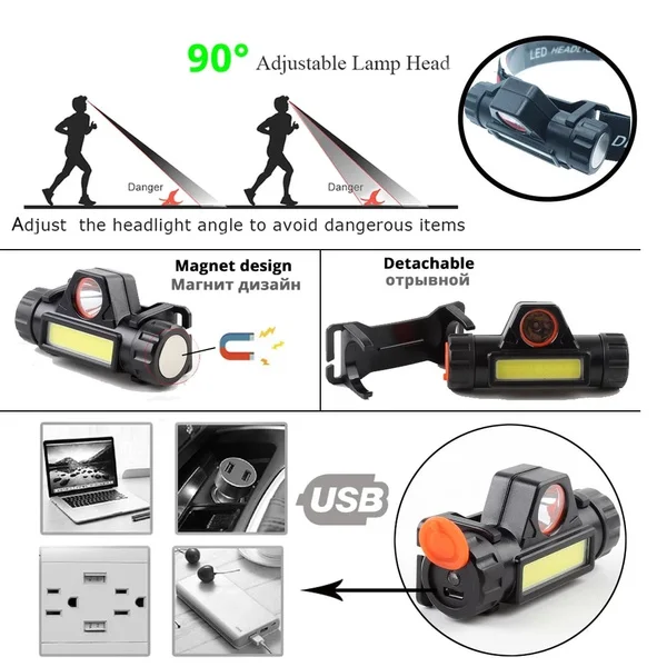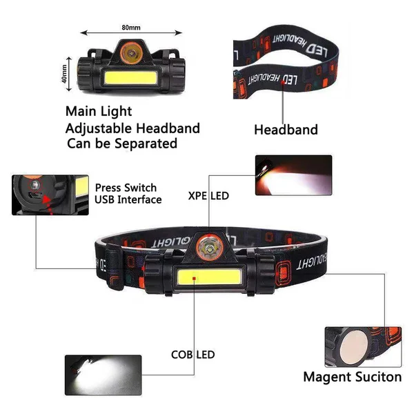 Налобный фонарь, светодиодный с сенсором Q5, водонепроницаемый точечный светильник с Cob матрицей, перезаряжаемый с аккумулятором XP-G, 5 Вт, рабочий светильник ильник, 18650 люмен