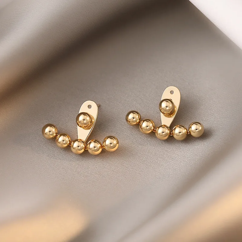Женские простые серьги-гвоздики, серьги из нержавеющей стали в виде золотого гороха, корейский стиль, свадебные украшения, 2021