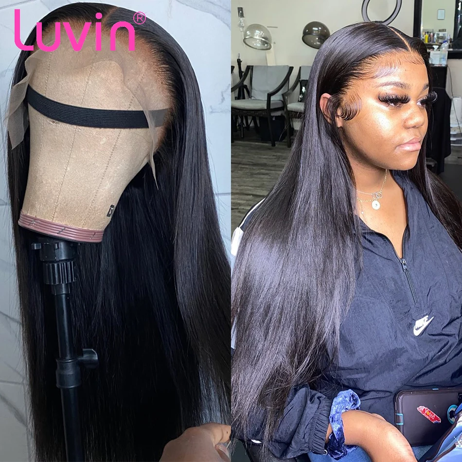 Luvin HD прозрачный 250 плотность 30 дюймов прямые бесклеевые кружевные передние человеческие волосы парики для женщин Бразильский 13х6 фронтальный парик