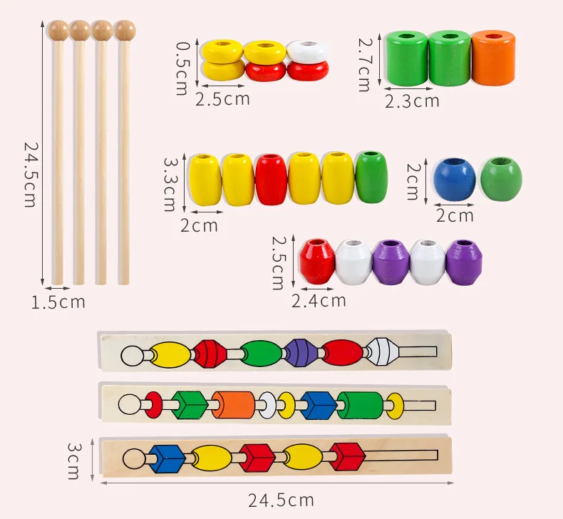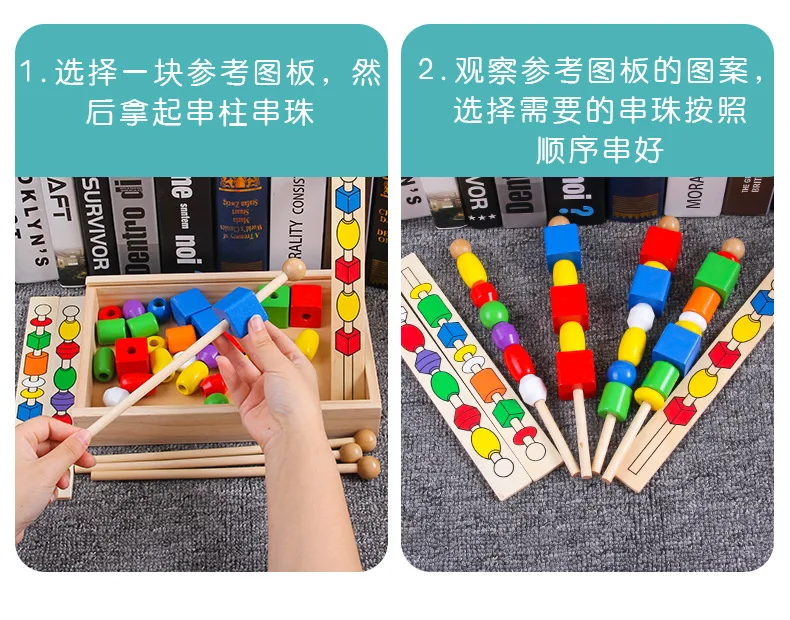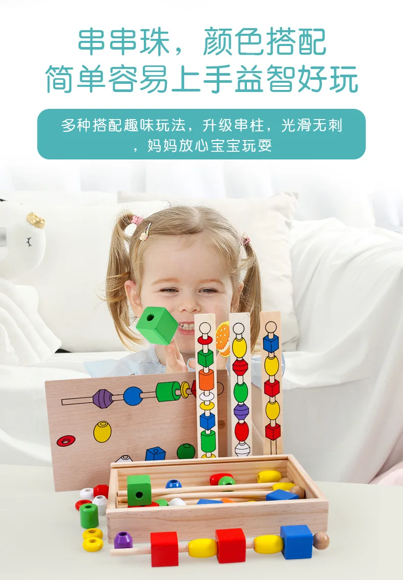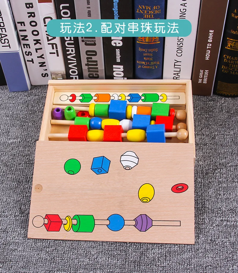 Эта игрушка специально разработана для детей 18 месяцев. Он состоит из деревянного ящика и разных цветов, четырех нитей, трех демонстрационных фотографий, деревянной коробки для удобной упаковки и шариковой игры для малышей. Приходите и получайте удовольствие и Тренируйтесь по координации глаз вашего ребенка