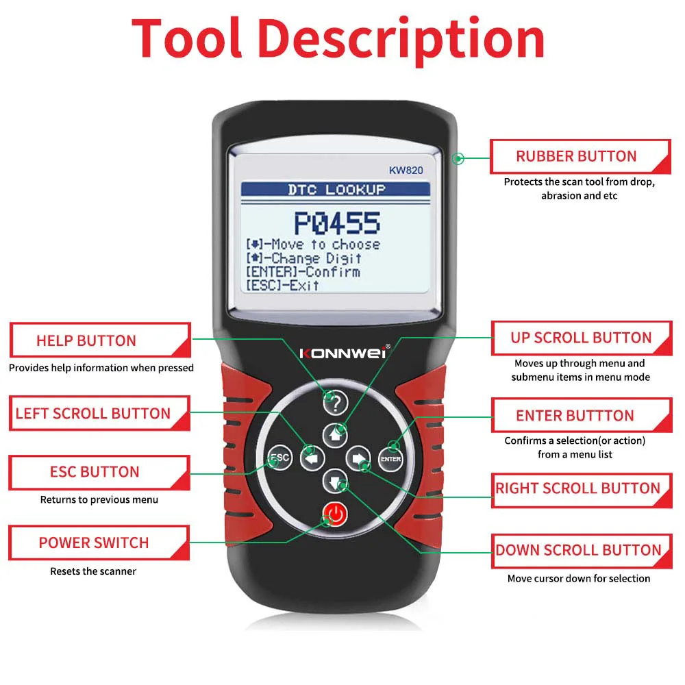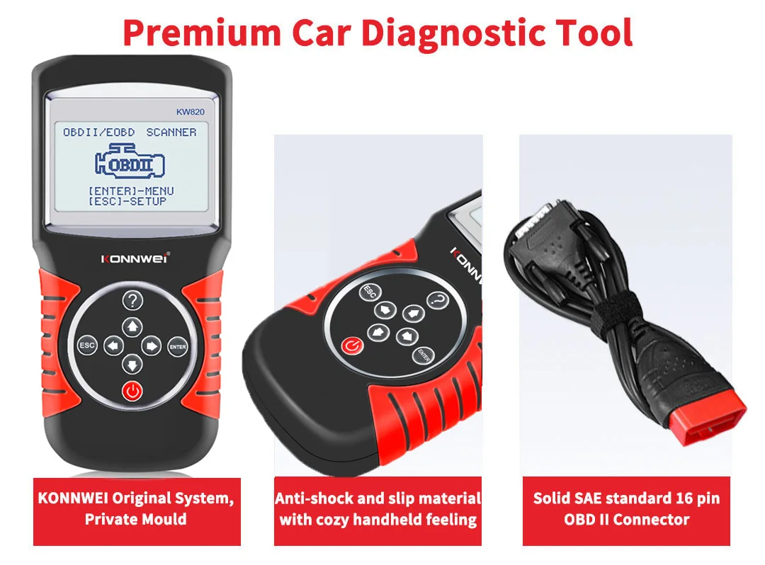 Автомобильный сканер KONNWEI KW820 OBD2EOBD, считыватель кодов, считывание ошибок по умолчанию, диагностические инструменты, поддержка нескольких языков, поддержка всех 9 протоколов OBD2
