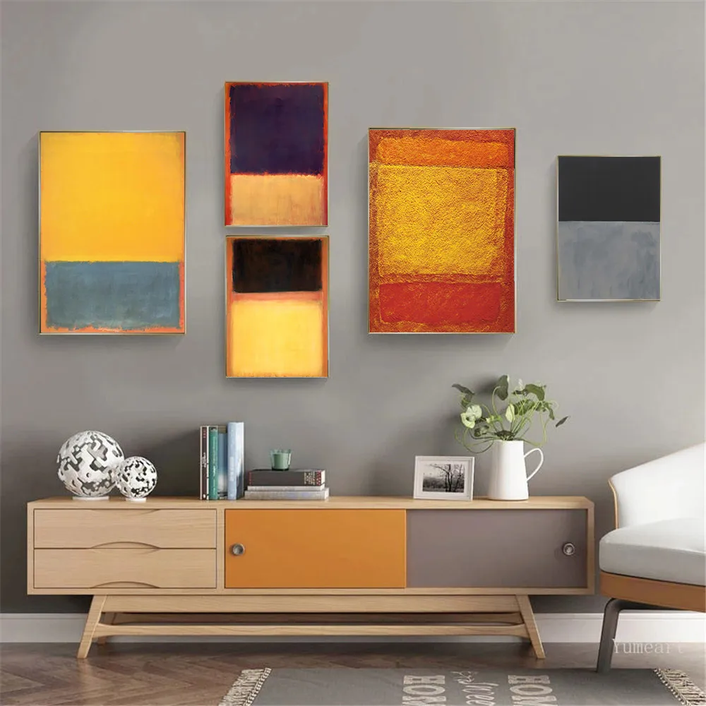 Абстрактная Картина на холсте Mark Rothko, красно-желтый красочный ВИНТАЖНЫЙ ПЛАКАТ, современный граффити, Настенная картина, декор для гостиной