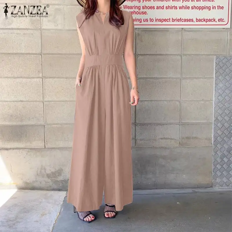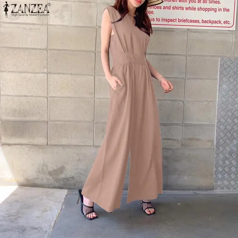 Элегантные однотонные комбинезоны, женские летние комбинезоны ZANZEA без рукавов, женские Комбинезоны на молнии, панталоны