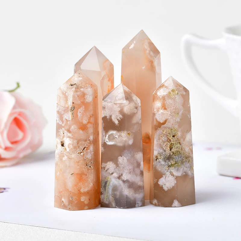 Природный Кристалл кварц точечный лечебный камень Вишневый Агат Шестигранная Призма 50-80 мм обелиск палочка каменная башня домашний декор