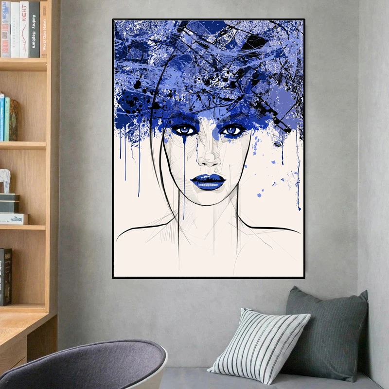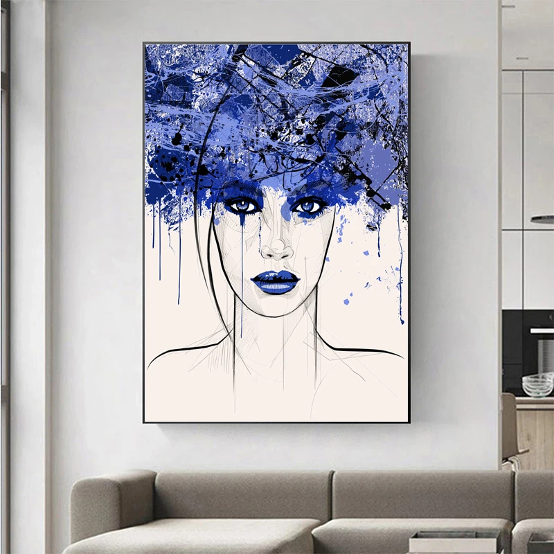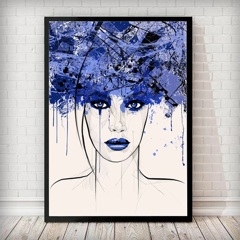 Абстрактные синие волосы граффити женщина холст художественные принты и плакаты Холст Живопись стены картины для гостиной дома Куадрос Декор