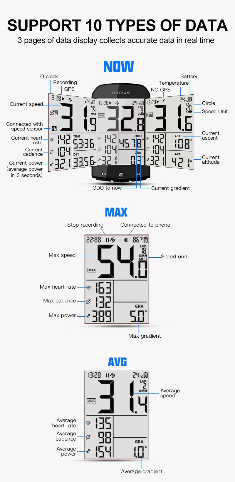 Совместим с монитором сердечного ритма, датчиком скорости cadense, измерителем мощности и т. д. известные бренды, такие как Wahoo, Garmin и ours CYCPLUS.