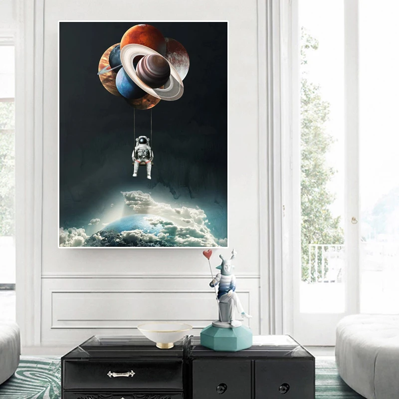Планет, астронавт, холст, картина, творческие плакаты, принты, настенные картины, современная спальня, гостиная, украшение для дома