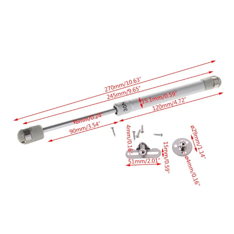 100% новый и высококачественныйОсобенности:Превосходный материал, изготовленный для вала, прочный и практичный.Тишина и мягкость при закрытии дверей шкафов.Для легкого открывания дверей кухонного шкафа.Для подъема дверные панели шкафа.Петля двери шкафа только с винтами, другие демонстрационные аксессуары на картинке в комплект не входят!Спецификация:Основной материал: стальОбработка поверхности: окраска распылениемПластиковый материал: ПолиоксиметиленТипы: 30N, 40N, 50N, 100N, 150NРазмеры: 27x2,9 см/10,63x1,14 дюймаЦвет: серебристыйКоличество: 1 шт.Примечание: 1. Возможны отклонения в 0-1 см из-за ручного измерения. Пожалуйста, убедитесь, что вы не против, прежде чем сделать заказ.2. В связи с разной конфигурацией разных мониторов изображение не отображает фактический цвет товара. Спасибо!Посылка входит:1 х петля для двери шкафа с винтами (без розничной упаковки)